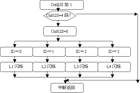 (3. 由于每次2秒定时到时,L1-L4要交替闪烁。采用ID来号来识别。当ID=0时,L1在闪烁,当ID=1时,L2在闪烁;当ID=2时,L3在闪烁;当ID=3时,L4在闪烁