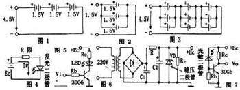 选择分类:当前分类——电子入门 相关联或者相类似的文章: 万用表(898) 交流毫伏表及其应用(895) 集成电路的检测方法(892) 什么是逆变?为什么要逆变?(892) 什么是反馈?(888) CMOS-晶体三极管VT的接口(886) 电视机型号代码识别(878) 万用表的使用注意事项(873) (871) 漏电保护器的安装与使用(870) 音箱选购基础知识问与答(870) [转帖]数字万用表自测电池电压法(866) 电子元器件使用须知——连载(864) 浅谈环绕立体声(855) 双稳态电路详细讲解(851) 三极管——认识及判别(843) 有关点阵的原理及接线图(843) 谈磁卡的损坏(842) 半导体存储器(841) 负载传感器的制作与应用(840) 首页 前页 后页 尾页 本站推荐: | 电子元器件使用须知——连载 电子元器件使用须知(一) 电子爱好者在进行电子活动中,要和各种电子元器件打交道,很多“貌不惊人”的小问题被初学者忽略,本文章是笔者对多年电子实践经验的活动。 1.电阻 电阻的并联、串联用处很多,特别是在应急情况下,用几个并联(串联电阻)来代替原先的电阻使用。但在使用中往往忘记考虑电阻消耗功率问题。例如:用一只5.14kΩ(1W)和一只5.1kΩ(0.5W)电阻并联后,共等效电阻约为10 kΩ,原来的电阻是10 kΩ/1W。使用时间一长,5.4kΩ/0.5W的电阻就会发烫、冒烟甚至烧毁。原因就在于5.1kΩ(0.5W)电阻标出的功率小于实际消耗功率。所在地不要以为只要等效电阻值对了就能替换,而不考虑功率。 2.电池 在小电子制作中,常使用于干电池串联作代电电源,如图1所示。将三节干电池正负极依次相连,串联后的总电压为各个电池电压之和。这里要注意的是,若更换电池组,应将三节电池全部更换,不能只换其中一节或两节,否则新电池会向旧电池充电,电池容量损耗更快。 图2是电池并联接法,将各电池正、负级相连,并联后的总电压即为各个电池的电压。电池并联后的目的是供给电路的电流可以增大。笔者曾将旧电池9节(如图3接法)用到随身听机器上,还可维持3~4天收听。 ![]() 3.二极管 很多初学者喜欢用万用表欧姆档来检测二极管的好坏。但有些二极管用该方法却不能奏效,例如发光二极管。除了应在两端诱因加正向电压外,还应考虑发光二极管的压降约为1.8V,所以不能使用R×1k以下各欧姆档(该档以下表内电池为9V或1.5V),即必须使其两端正向电压大于管压降。另外,发光二极管必须流过一定的电压,电流越大发光强度亦越大,但是一旦超过管子最大工作电流必然烧坏该管,所以必须加限流电流,如图4所示(Ec-Vc)/IF,其中Ec为电池电压,Vc为管压降,IF为管子工作电流,一般IF取10mA。例如:Ec=6V,Vc=1.8V,IF=10mA,则R限取470Ω。 大多数二极管如整流二极管、开关二极管、发光二极管等都是工作在正向导通状态下,例如图5所示晶体管V驱动发光二极管LED电路,LED的正极接高电位,负极接低电位,这就是二极管接法。但要注意的是有些二极管如稳压二极管、光敏二极管却是工作在反向击穿或反向导通状态。图6是硅稳压二极管组成并联式直流稳压电源,图7是当敏二极管构成的光信号接收放大电路,请注意它们在电路中的接法,其正极接低电位,负极接高电位,与图5中LED接法正相反。 1、 本站不保证以上观点正确,就算是本站原创作品,本站也不保证内容正确。 2、如果您拥有本文版权,并且不想在本站转载,请书面通知本站立即删除并且向您公开道歉! |