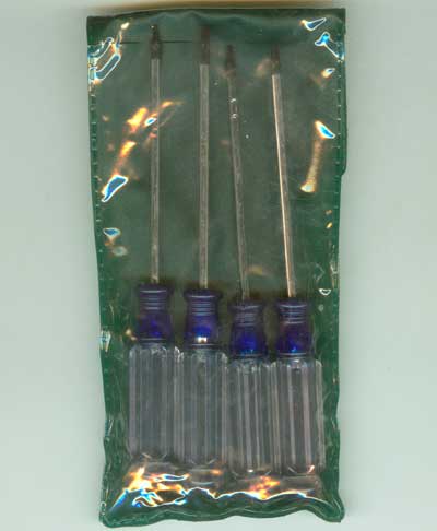 拆手机等常用的六角螺丝刀,四支一套,本站保证所发4支绝不重复,四支尺寸如下:(该尺寸仅供参考,我们用用卡尺测量螺比刀头部的最大宽度和最小宽度。) 1、型号:T-5;最大宽度1.5mm;最小宽度1.3mm。 2、型号:T-6;最大宽度1.8mm;最小宽度1.5mm。 3、型号:T-8;最大宽度2.0mm;最小宽度2.3mm。 4、型号:T-10;最大宽度2.7mm;最小宽度2.4mm。
