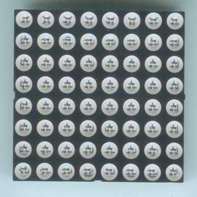 红绿双色点阵共阴,全新8×8,发光尺寸:Φ3.5mm,发光颜色:双色.绿色和红色.透明,表面黑色。总点数:64,表面大小 :38.1×38.1×10.2(mm),双列24脚,位距:2.54mm。