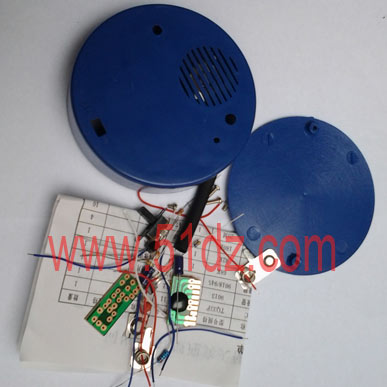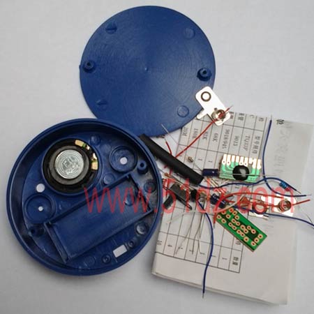 电子迎宾器欢迎光临套件;光适应范围大;声音洪亮;组装简单,成功率高。电路设计简单合理适合初级电子爱好者组装,是一款实用而又具有学习价值的产品。组装好后就是产品,跟市场上卖的产品大同小异。 利用人走过迎宾器时会产生一个阴影的特点,通过光敏电阻对光线变化信号的接收,作为本制作的传感器。利用光敏电阻实现迎宾功能,音乐芯片的声音为“你好,欢迎光临!”。当感觉到有人体经过,就发出一次声音。欢迎大家制作,电路板在以前的基础上改板,现在用的玻纤板,板的大小尽寸:25.2*11.7mm 焊盘在2.5mm~3mm; 本套件比这前的外壳要大,电池用的是普通的2节7号电池,这样电池损坏后非常方便的配置,比钮扣电池方便多了。壳内空间也大,非常的方便安装。