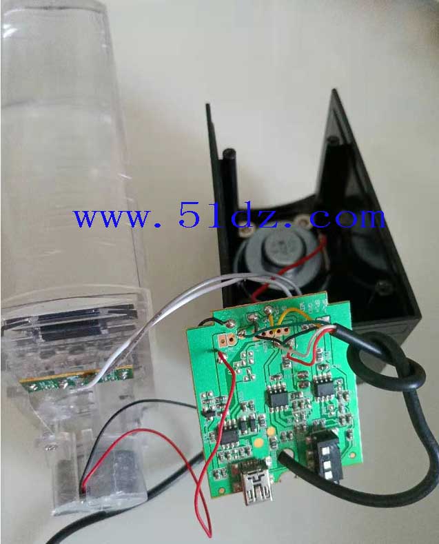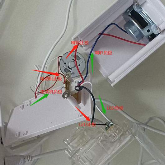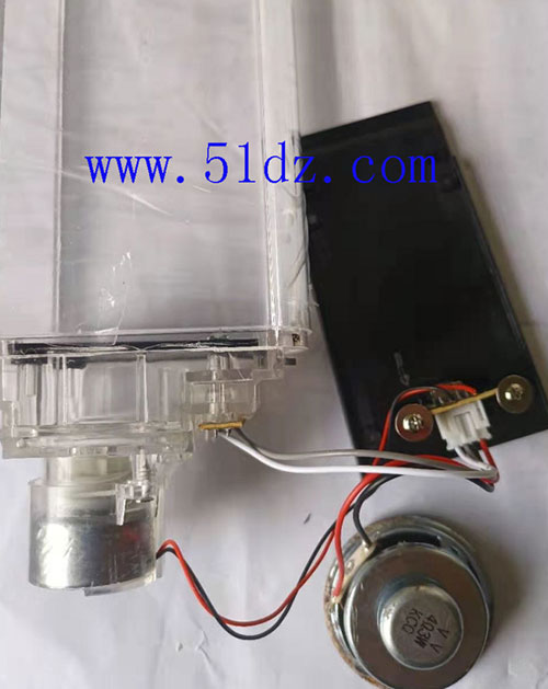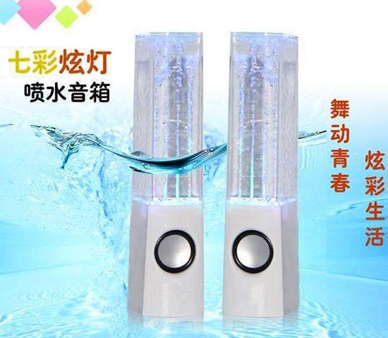 工作原理:改变音乐频率就改变了电动机的转速,电动机的转速随着音乐的音调,节奏、强弱变化而变化。随着音乐的节奏感越强,电动机的转速越快,水就不停向上喷出。电机轴上一定要装有带磁铁的塑料片,封闭液体音箱体内同样装有一片带磁铁的塑料叶轮片,固定电动机的位置正好使2个塑料片靠在一起,利用磁铁同性相吸,异性相斥原理,电机一端转动起来,去推动音箱箱体内带磁铁叶轮片的转动,随着箱体里叶轮片的转动给周边水一个向外排挤的压力,水就从发光二极管的腔体不停向上喷出,因为发光二极管颜色的不同,所以人眼看到喷出水的颜色跟发光二极管的颜色一样,显示出的就是彩色的。如果箱体是倒着或叶轮片转动的地方没有水,也就没有水向外喷出的现象了。